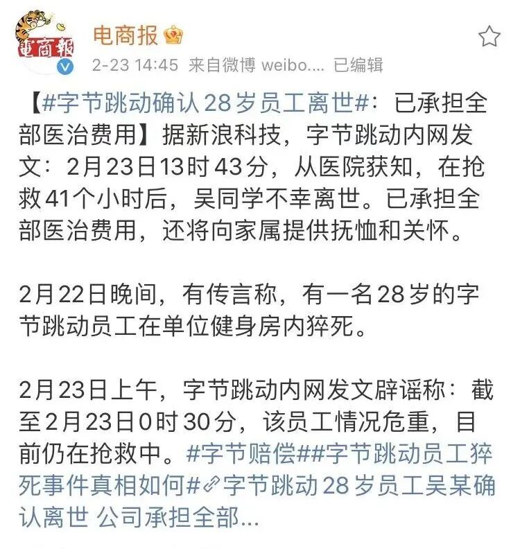 痛心!上周字节跳动一位28岁员工心梗猝死的新闻,想必不少人都看到了吧?