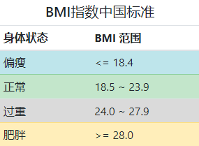 简称体质指数,是国际上常用的衡量人体胖瘦程度以及是否健康的一个标准,以下就是参考标准