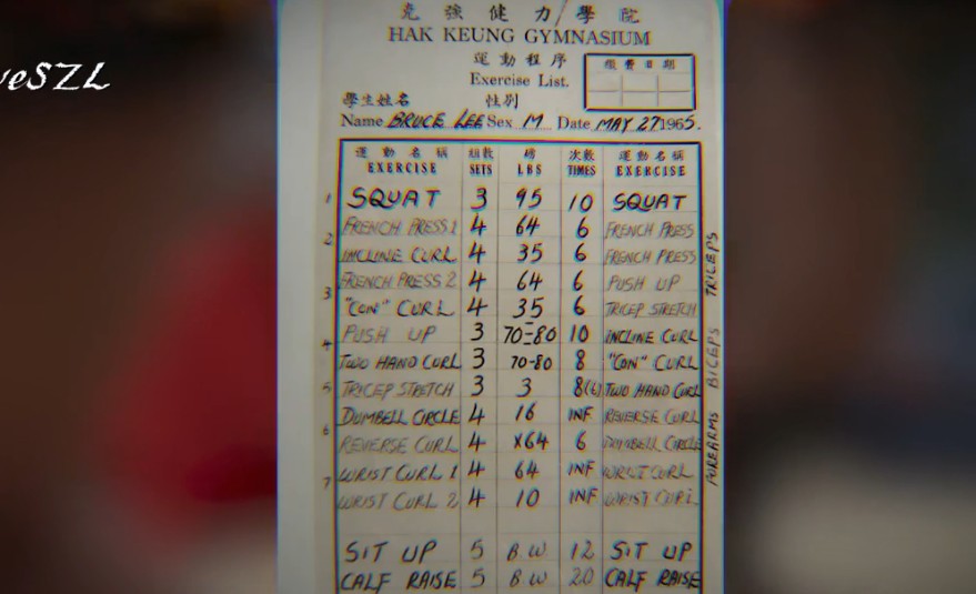 我也扒到了龙哥珍贵的训练内容,这是他在香港克强健力学院填写的训练笔记