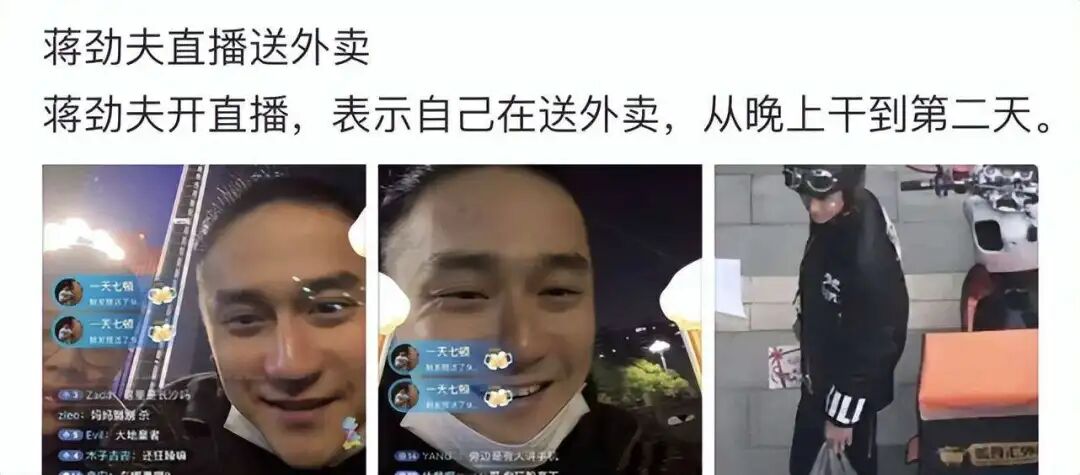 而最近我又在新闻里看到了他的身影。原来,他开了直播,说自己开始送外卖了。