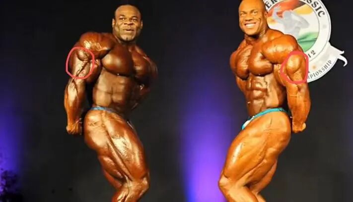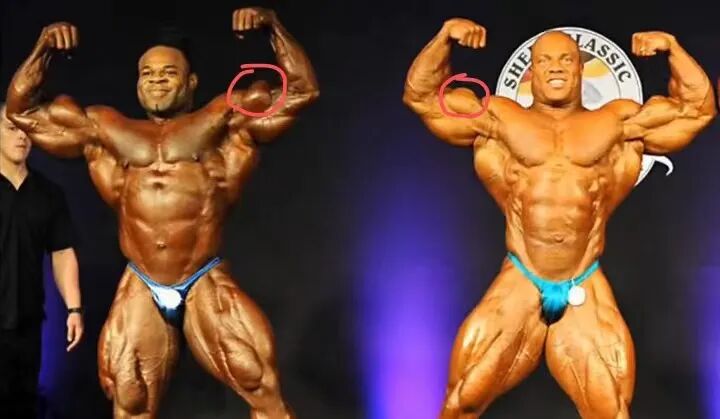 但肌腱的长度,并不是越长越好,再看这俩人的三头外侧头,凯依旧属于肌腱长,但造成的后果就是手臂饱满度,和西斯差了不是一个档次。