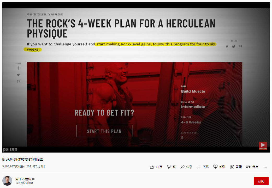 视频里该博主剑至好莱坞一众肌肉明星,说他们并非宣传的那样,是完全靠训练拥有的好身材,而是可能使用了类固醇。