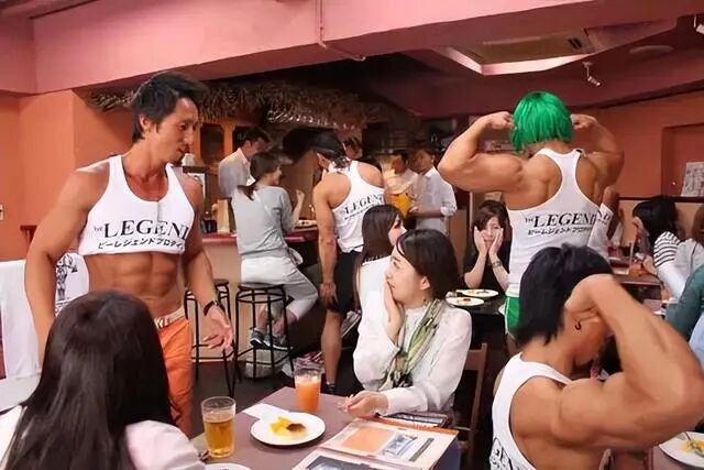 当然,国外也不乏这样的案例。之前日本出了个“肌肉男咖啡厅”就大受欢迎!还没开店呢,就有好多人排队了,而且大多是20-30岁的女性