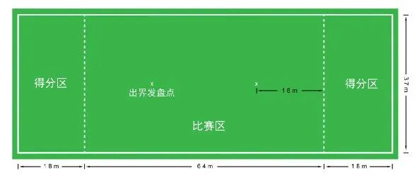 飞盘理想的场地是一块较大的长方形草坪,两端各有一块得分区,两支队伍,每队7人(当然人少也是可以玩起来的,篮球也有3V3)
