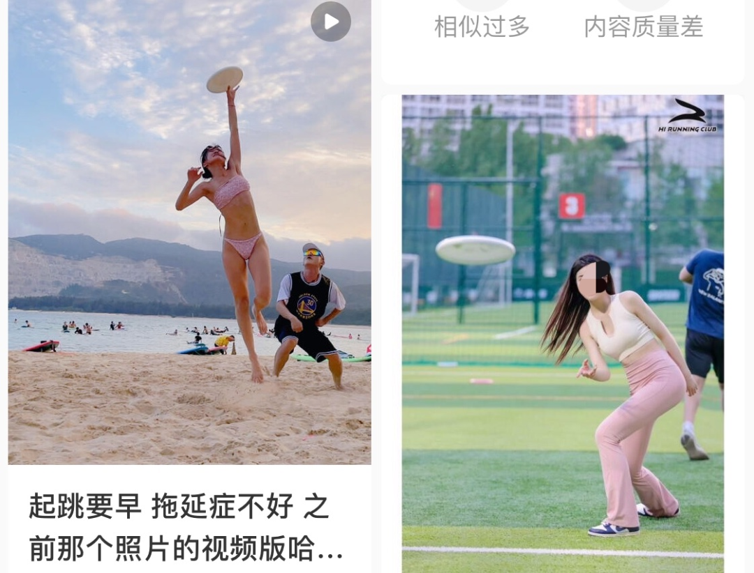 在某书上搜索“飞盘”,刚打了个“飞”,下面的图片就已跳入了我的眼帘,直击大脑最深处。