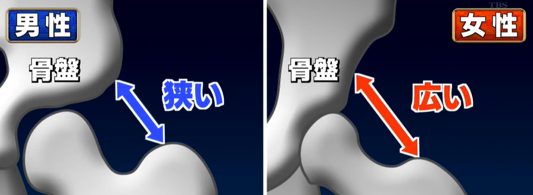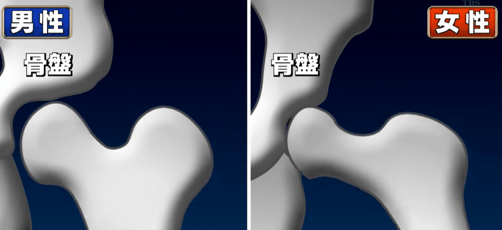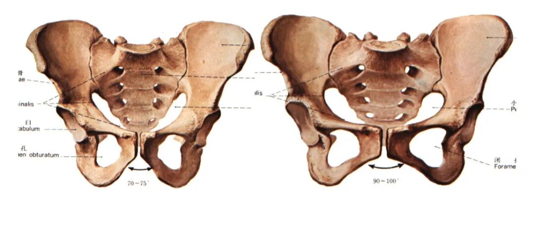 首先是男女的骨盆差异,之前我们也提到过,女生因为需要生育,所以骨盆会宽很多。