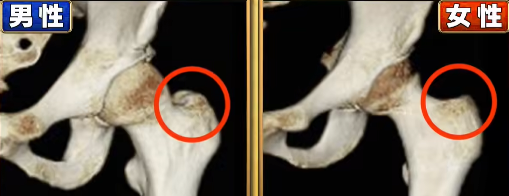 所以男生的大转子和骨盆之间的空隙会比女生小很多,蹲下的时候就更容易卡住、受限。