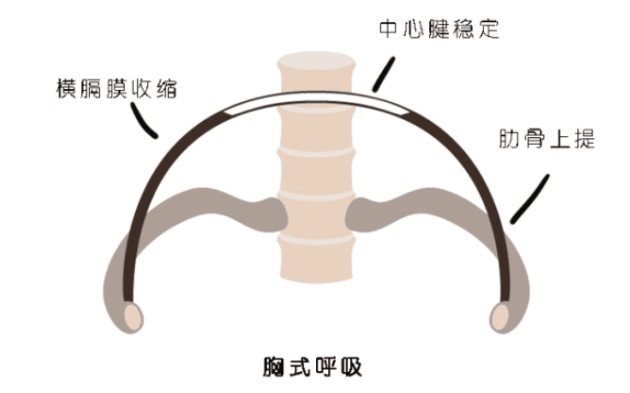 当我们采用胸式呼吸(错误呼吸)的时候,往往无法让横膈膜完全激活,导致腹部呼吸肌功能下降。