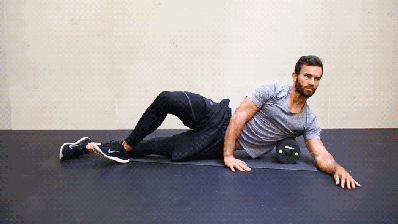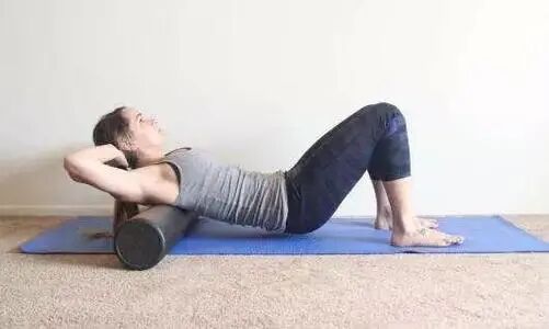再将泡沫轴放在中背部,前后滚动。