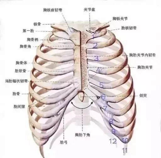 肋骨会向胸前顶出,而不是向两侧及后侧展开,同时颈部肌肉会抬起肋骨,从而导致腹部呼吸减弱,最后导致肋骨翘起。