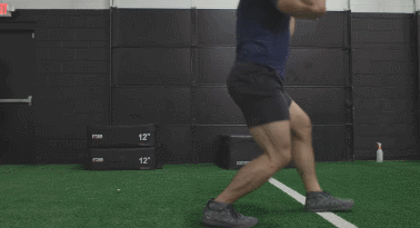 这些单腿动作的好处在于,没有完全单腿,一条主发力腿,另一条腿会协助稳定。