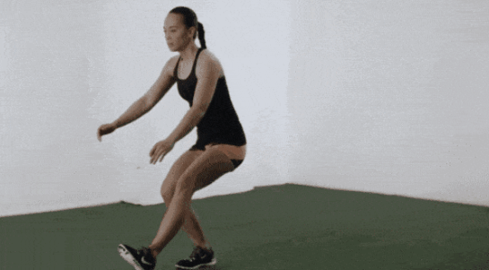 半程手枪蹲:双手持哑铃,全程都要处在下蹲位置,不要完全站起来,这样可以阻碍血流动,让血液停留在股四头肌,酸爽无比。