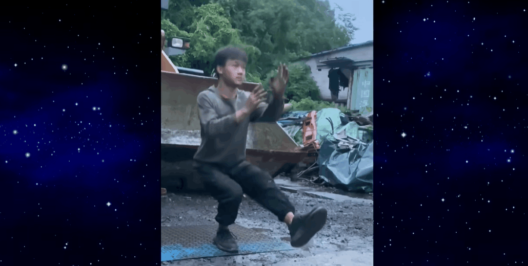 配合着《叶问宗师》粤语歌的BGM,小杨这一蹲,却意外走红网络,获得了263w+的点赞。
