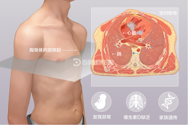 一般认为是肋骨和肋软骨过度生长造成的,胸骨的畸形是继发于肋骨畸形的,也可继发于胸腔内疾病。