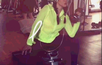 除了用有氧控制体脂,她做最多的就是各种各样的力量训练,十分强调了保持力量训练对女性身材的好处。