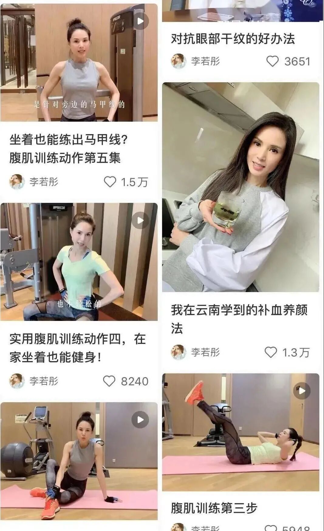 其实只要随便翻翻李若彤的社交账号,就不难发现原因:她每周要去健身房锻炼2~3次,还会在家做有氧和练自重,堪称打卡狂魔!