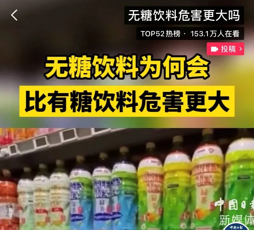最近,一条关于无糖饮料的视频冲上了热搜榜。
