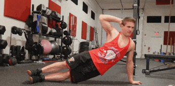 侧卷腹:紧致腰线!单手支撑,收缩侧腹部,将胯部顶向天花板方向(注意,身体顶起来是收缩)左右各做15次,每侧做4组。