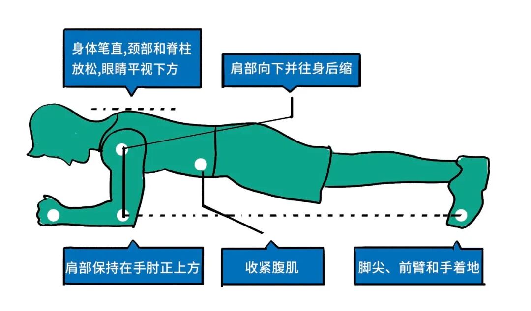 说白了,多次数,少时间才是王道!而正确的动作应该如下,现在!马上!按照下图来一个最标准的平板支撑给MAX看