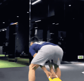 这个更倾向于全身训练,适合新手一些,腰背挺直一直线,下背部绷紧,壶铃向前摇摆时,用力收紧臀部。