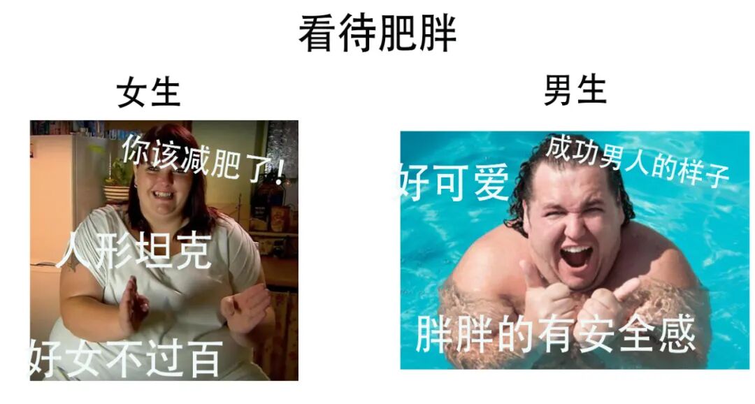 而且啊现如今大部分的负面评论,都还是针对女生的,什么好女不过百啊,美女要自律啊。对女孩子的身材批判往往比男生严格多了。
