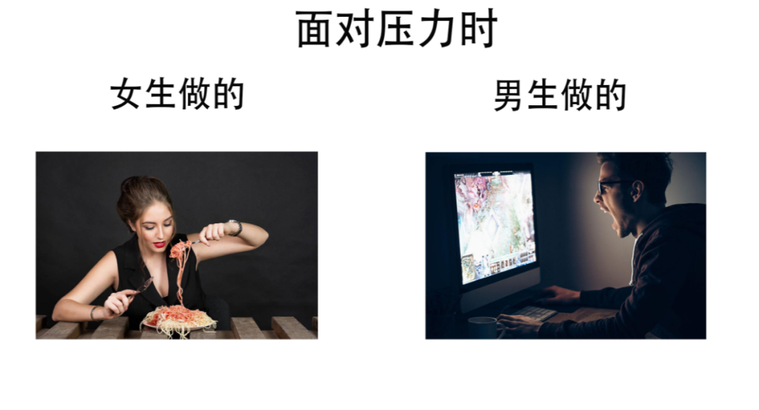 MAX可不是信口开河,据行为研究表明,女生相比男生,在受到情绪和场合影响的时候,更愿意通过吃来缓解压力。这就导致了女生的失控饮食和情绪饮食。