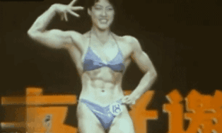 同时,女子组的比赛也是重头戏,因为那时候女生练这个是非常非常新鲜的,看这腹肌和背部肌肉,你能扛得住她一拳吗