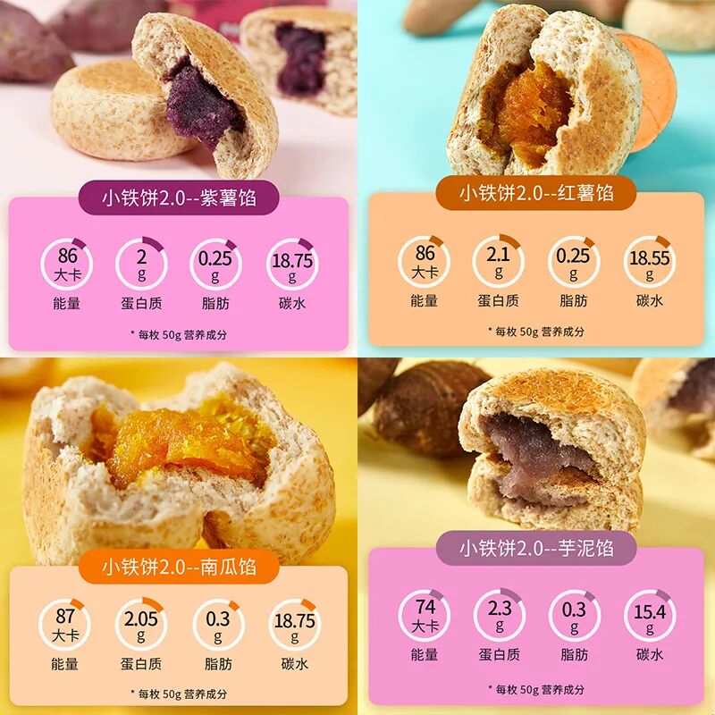说到夹心,你们可能会担心热量问题了,低卡博士家是直接用的紫薯、红薯、南瓜、芋头做的夹心,非常绿色健康,饼皮也是全麦,热量自然也不会很高。
