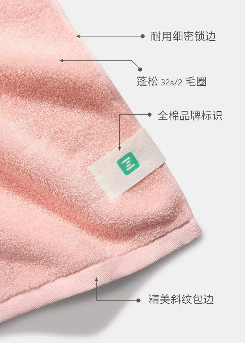 这款毛巾给采用的是被称为”棉花皇后“的新疆阿瓦提长绒棉,给我的最直观感觉就是超!舒!服!非常柔软,吸水性也不赖。