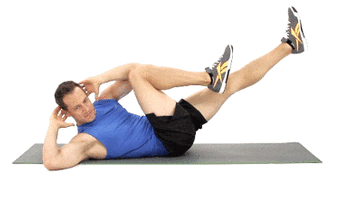 仰面平躺在瑜伽垫上,按下图双手双脚交替抬起触碰,向后伸的腿记得伸直并抬起。一组完成30-60秒,做2-4组。