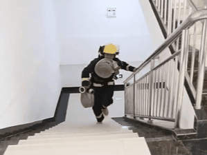 想想我们要是抱着个50多斤的小孩,走路都坚持不了多久,可消防员们平时却要用这样的负重来爬楼、折返跑,常常一场训练下来就衣服湿透、筋疲力竭。