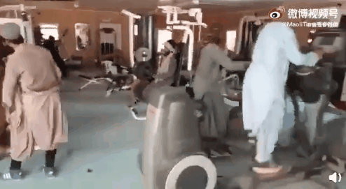 塔利班士兵进入阿富汗首都接管总统府后,不少人直接去了总统府健身房,第一次接触现代化健身房的他们玩得不亦乐乎~有狂玩高位下拉器的