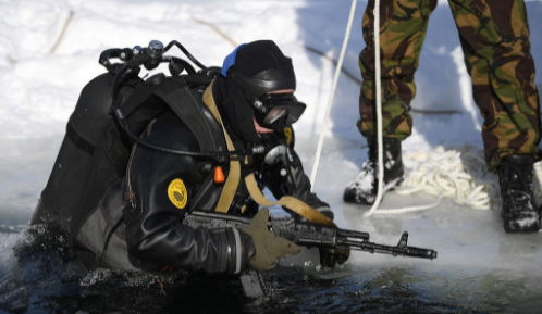 他们的训练也比较硬核,为了适应低温的环境,经常在雪地中进行训练,甚至在冻成狗的冬天做潜水训练