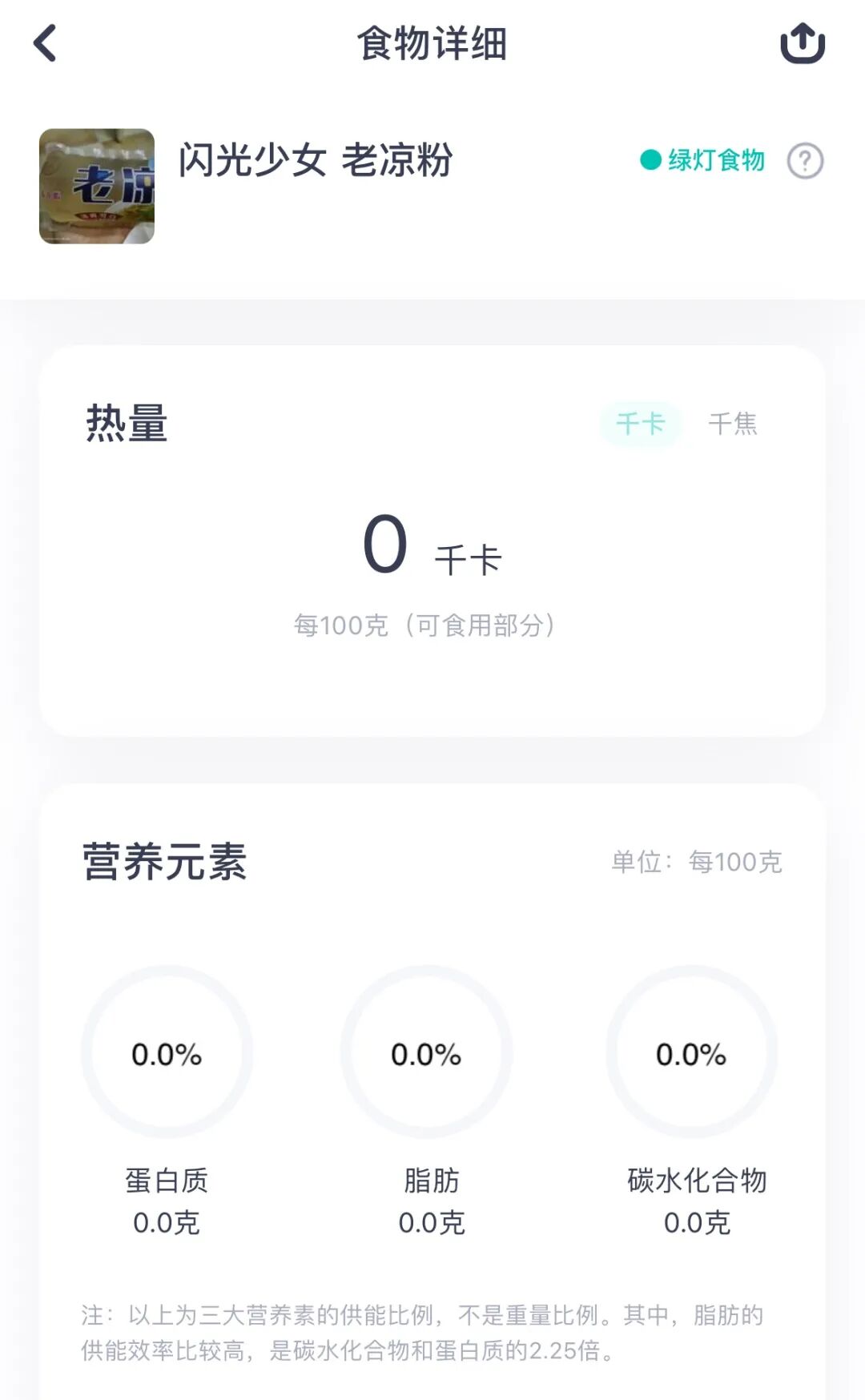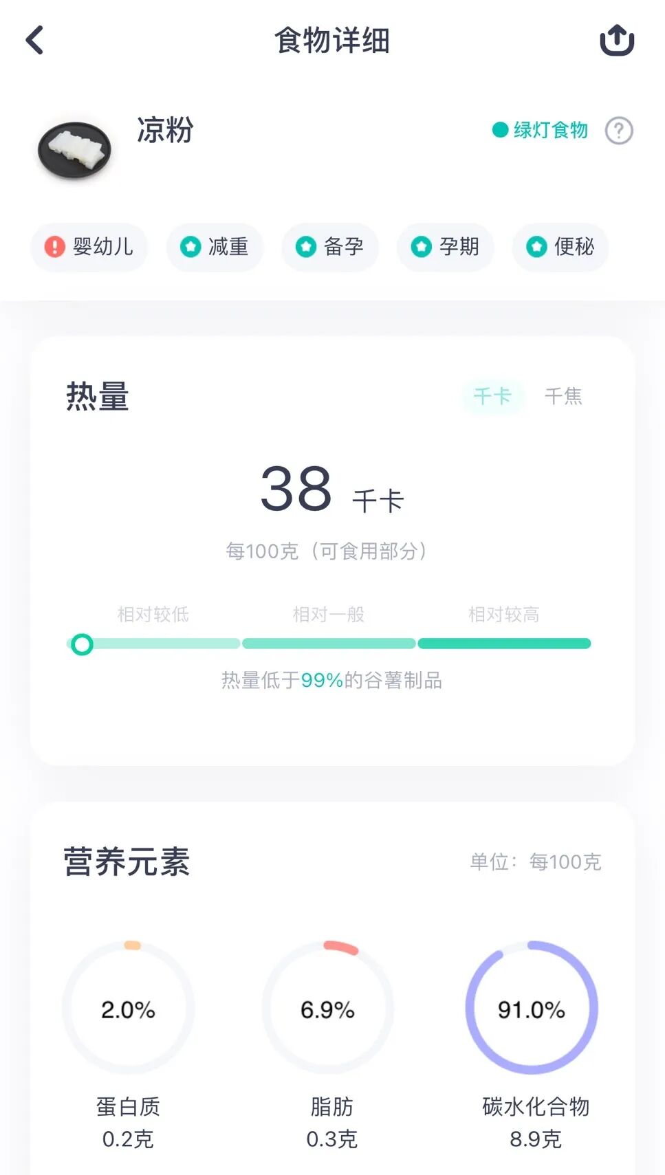 每百克才38大卡!碳水含量也不高,可以切点黄瓜丝、番茄片,一勺醋,一勺酱油,饱腹感妥妥的!而且有些品牌的凉粉更过分......居然全部都是零?!堪比空气?(非广告