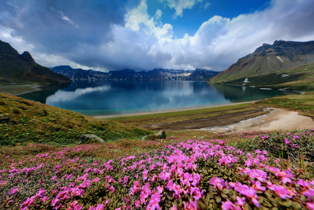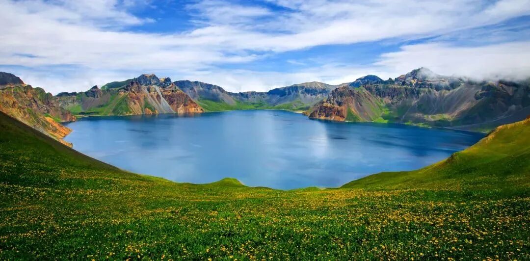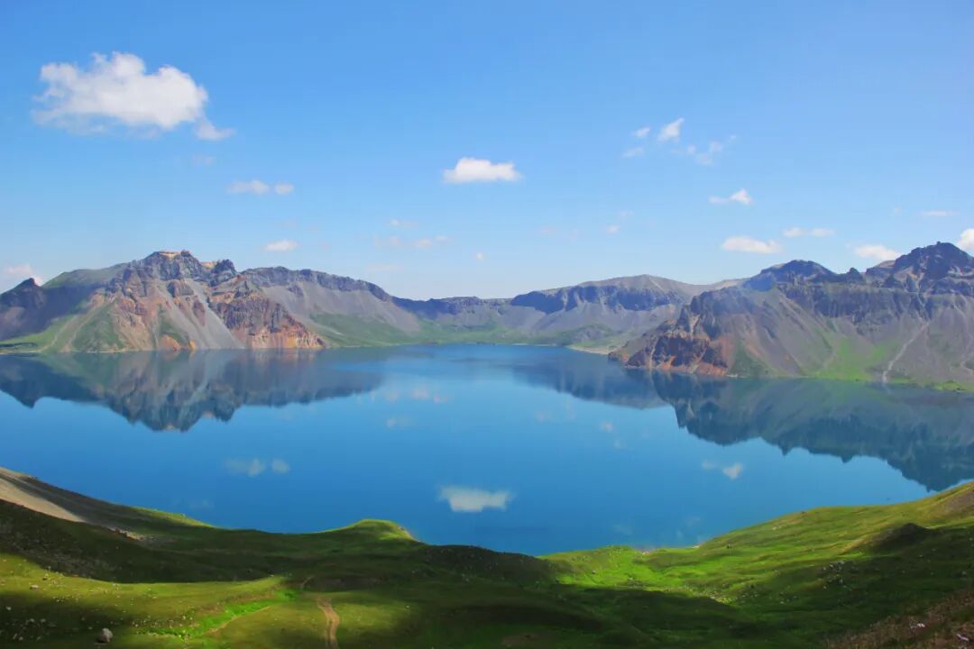 长白山天池是我国海拔最高的火山口湖,由于纬度高,周围山体高,天池的融化时间较晚,是国内最后一个开冰的湖,随着冰消雪融,云雾较少,天池也进入到了一年中最佳观赏期。大部分人误以为冬天的天池最美,但往往只能见到白茫茫的云雾一片,白白挨冻一场,并不能饱览天池的真实模样。而夏天的天池,却常常能大方地展露自己的美丽面貌。