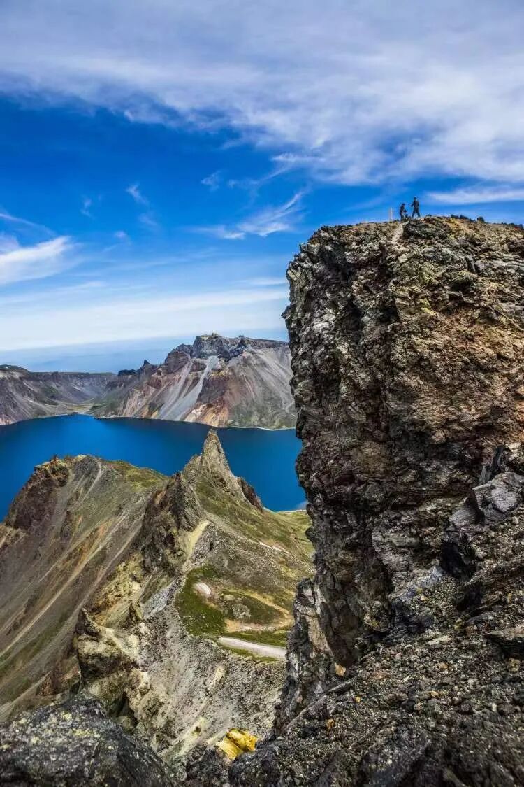 北坡纵是一路景观丰富,但所看到的天池略有遮挡,视野不够全。而西坡论看天池的视野之佳,堪称一绝。徒步攀爬玉柱峰 1442 个台阶抵达神山圣水——长白山天池。