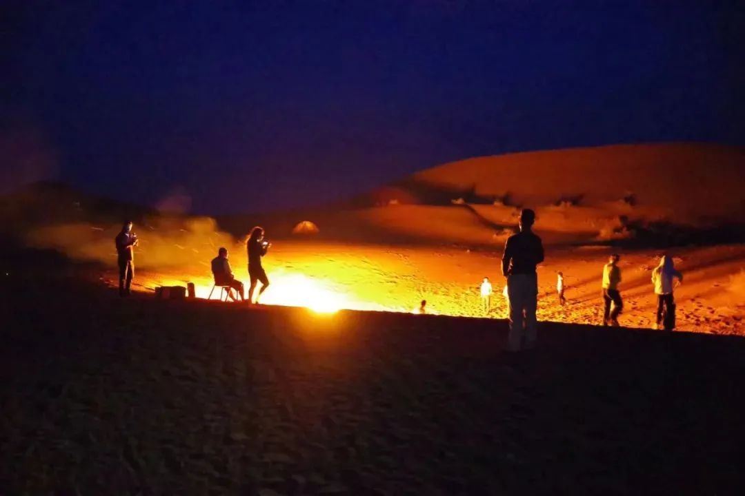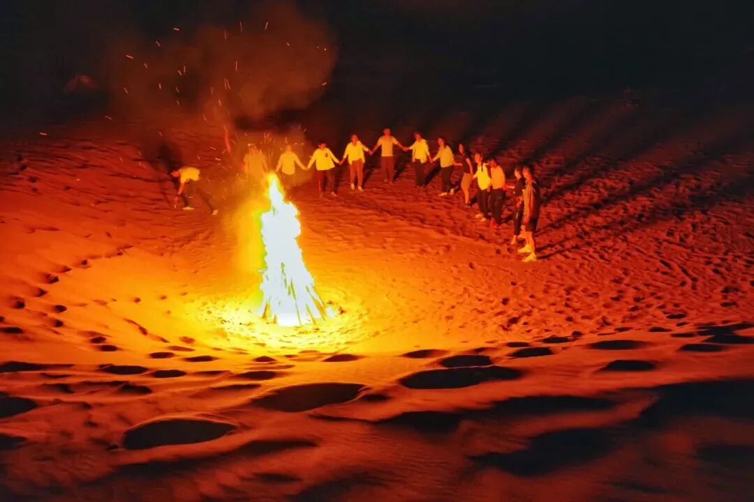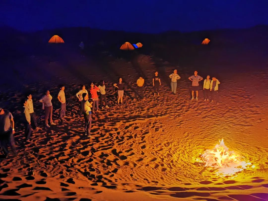 晚上安排了篝火晚会,你可以在广袤的大漠里高歌一曲,这种体验是难得的奢侈,就连平日里最腼腆的队员,也忍不住加入大家的队伍中跳起舞来,度过一个轻松欢乐的夜晚。