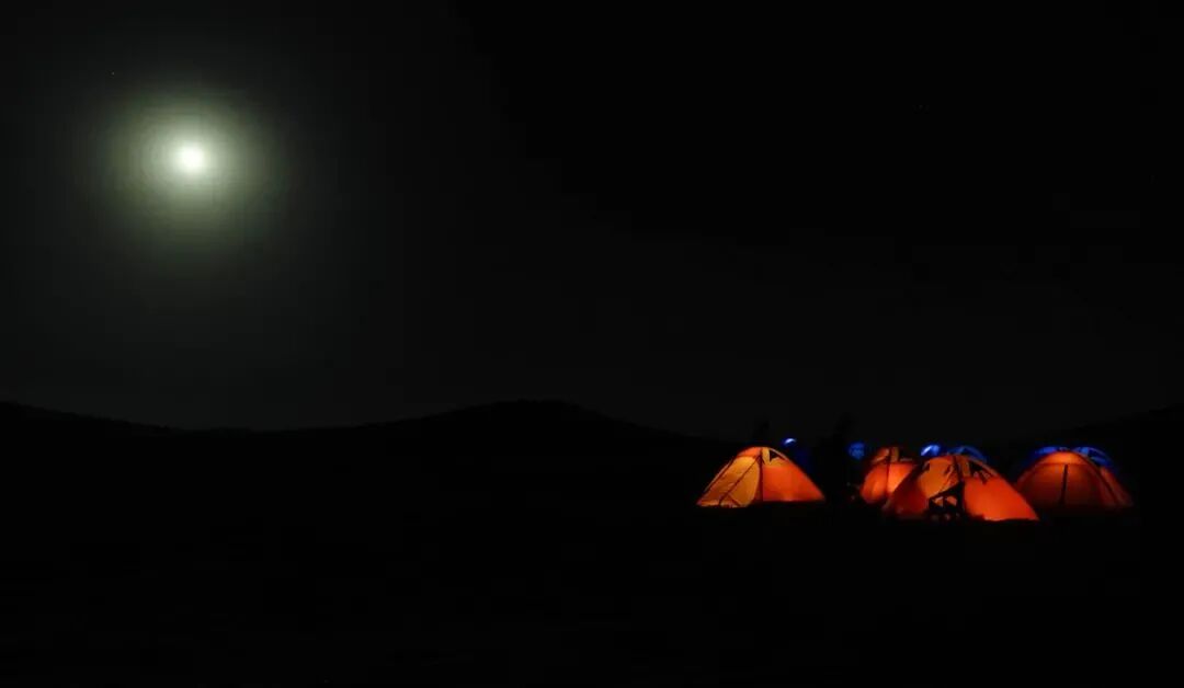 整理装备后开始徒步进入沙漠,途经神泉到达牛湖,于傍晚时分抵达鸣沙山。夜宿鸣沙山,领队会教您如何快速搭建帐篷,随后享用丰盛的营地晚餐及时令水果。日出和日落时分是沙漠中拍照的最佳时间,我们还准备了有趣的滑沙板,晚餐后坐上沙山上等待流星。