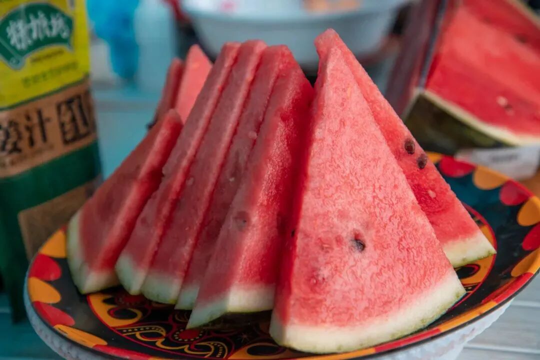 最后少不了的是一块甘甜爽口的西瓜🍉 ,风靡全国的晒沙瓜号称是“在石头缝里长大的西瓜”,这个产自中卫荒漠化地区的“戈壁西瓜”,肉质紧密,沙脆而不腻,味甜如蜜。