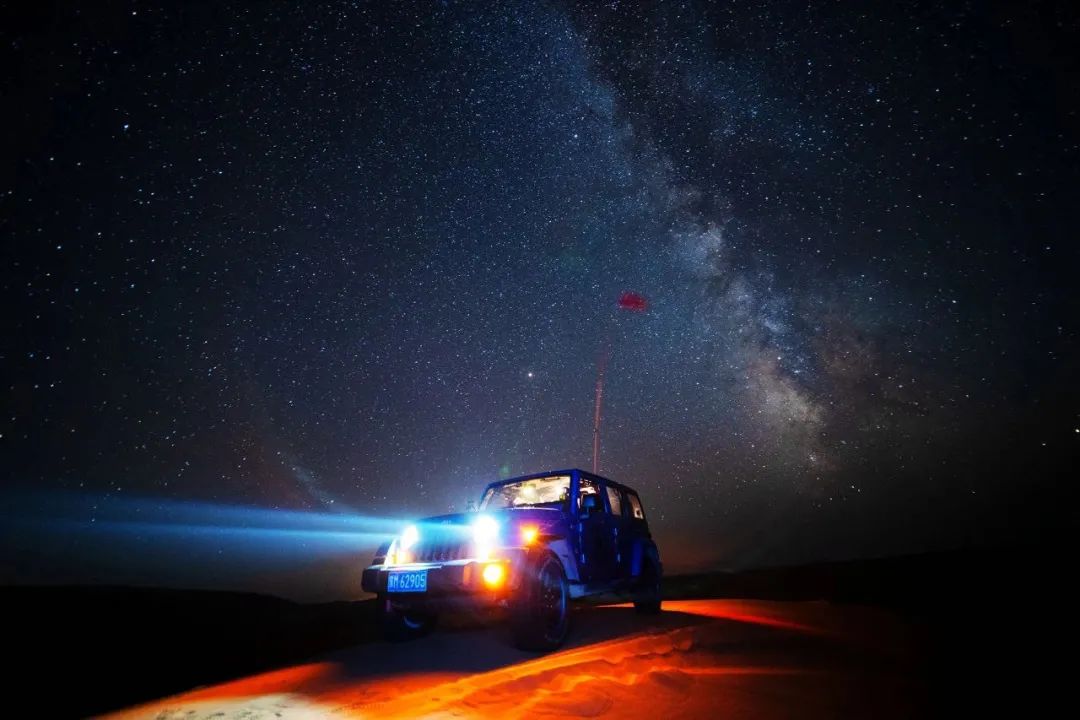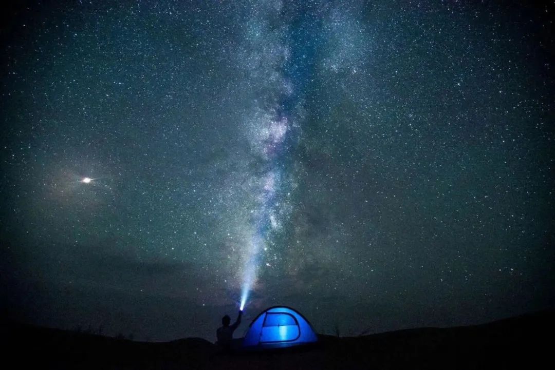 深入腾格里沙漠的腹地,远离了各种人造光干扰,又因为常年干旱云层稀薄,不用借助天文设备便可以把漫天星空尽收眼底。