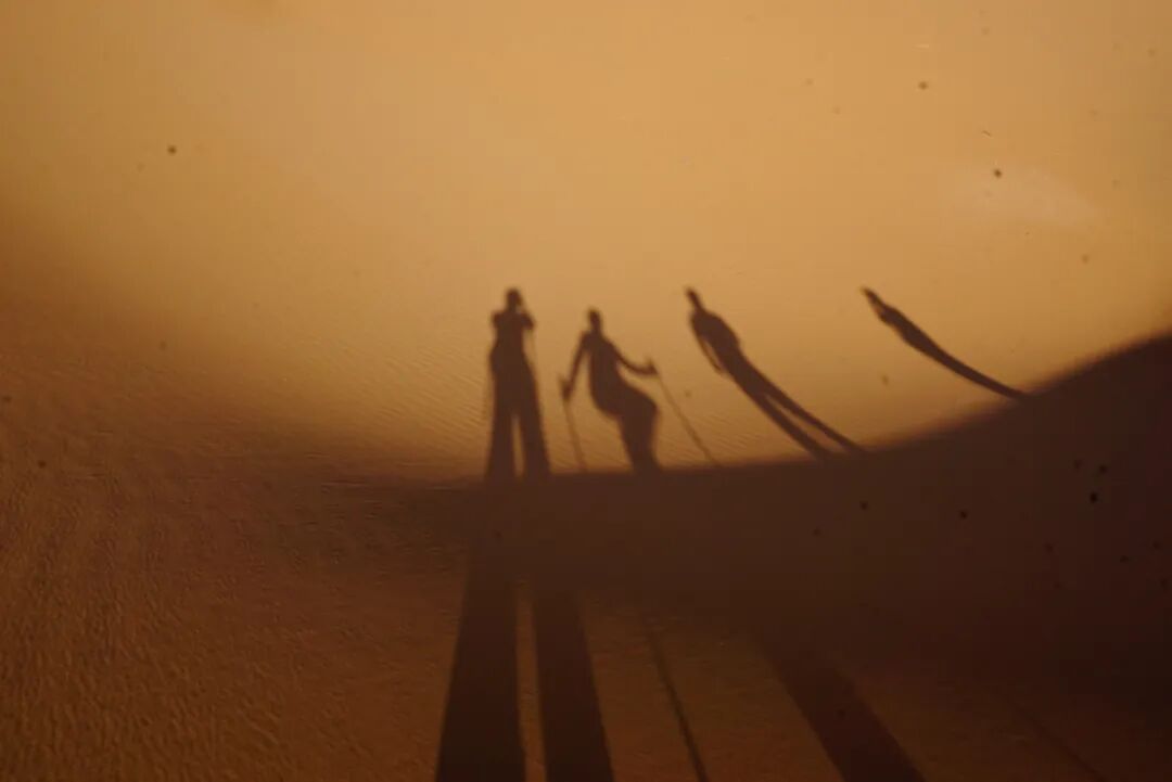 初入沙漠,一切都充满了新鲜和好奇。双脚被柔软的沙砾包裹,每一步都像是踩在软绵绵的棉花上那样无力,越用力反而越有可能往下滑。