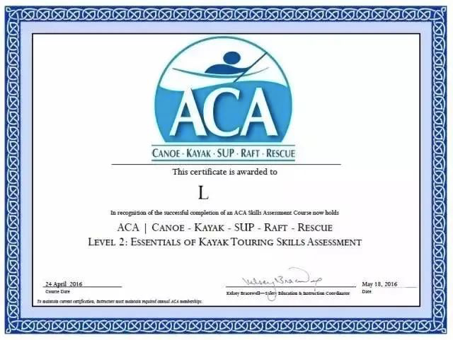 经过 ACA 指导老师考核,合格者将根据考核情况获得美国 ACA 二级(或一级)皮划艇能力认证证书。此证书国际认证,可用于申请国外学校。既能成为孩子们精神世界的宝藏,也能为孩子的履历镀金。