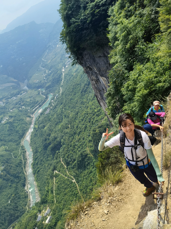 环绕其上的绝壁小道,便是我们此行的挑战目标。下面的实拍图,领队坚持说,其实宽敞安全得很,没有看上去那么狭窄惊险。你一定要来试试哦,反正我信了。