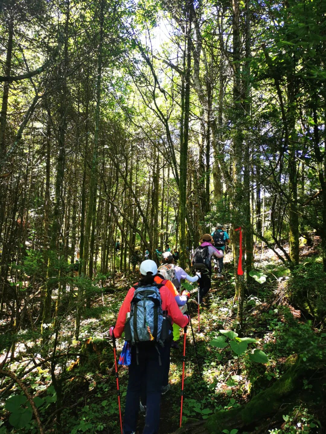 今天的爬升不算太多,多半在山间上行走,途中可见到羚羊、毛冠鹿、野猪等野生动物踪迹。最后我们穿越原始森林,到达当晚住宿点廻龙坪村,这个村有两座两百年历史,保存完好的四合大院。四周群山环绕,有着自然淳朴的环境风貌。