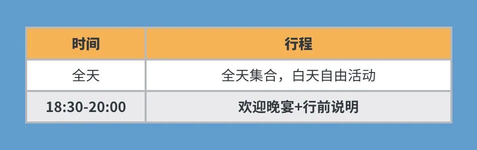 晚上举行欢迎晚宴及行前说明,欢迎远道而来的朋友们,并介绍领队、活动行程及注意事项。请务必参加。具体时间和地点出发前另行通知。