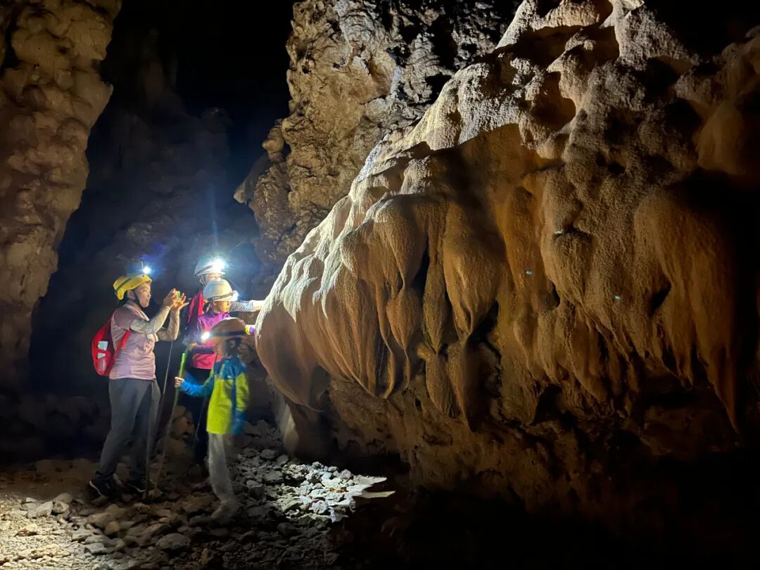 洞内有形态壮观的钟乳石,北壁还有一令人叹为观止的巨石瀑布,悬自洞顶,远望如银河飞泄,气势如虹。相信很多朋友对于探洞心有所向,却又对巨大的天坑速降心存犹豫,不如就从最简单的体验开始吧,就此打开神奇的地下世界之门,感受那里的光怪陆离。