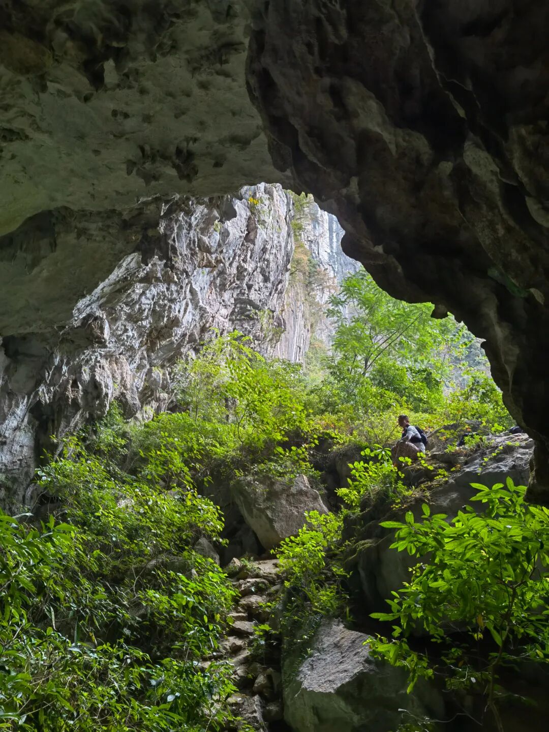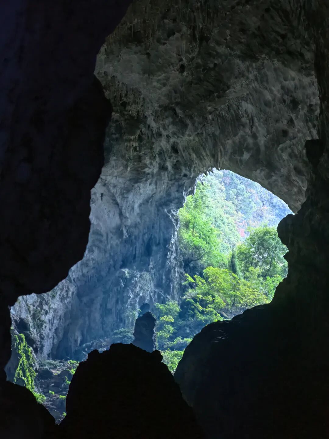除了天坑溶洞的奇妙,来到这里欣赏到的第一奇观,便是穿岩,也叫穿山。这是一座天生桥,完全形成于自然,站在下面,直面它的高耸伟岸,不得不感叹天地造化,也不禁感恩的我们是多么幸运能有此眼福。