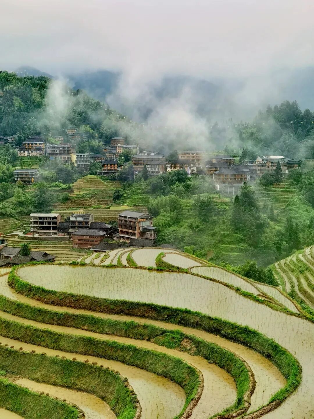 龙脊不只四季皆美,不同天气也都各有意境。这里的晴天壮丽,雨天则更显柔美,甚至更妙。雨雾或云雾给梯田蒙上层层神秘的面纱,如梦如幻,如泣如诉;沉睡的村寨空灵如仙境一般。也许你去很多地方都祈祷天晴,而来这里,你该渴望一场雨的降临。