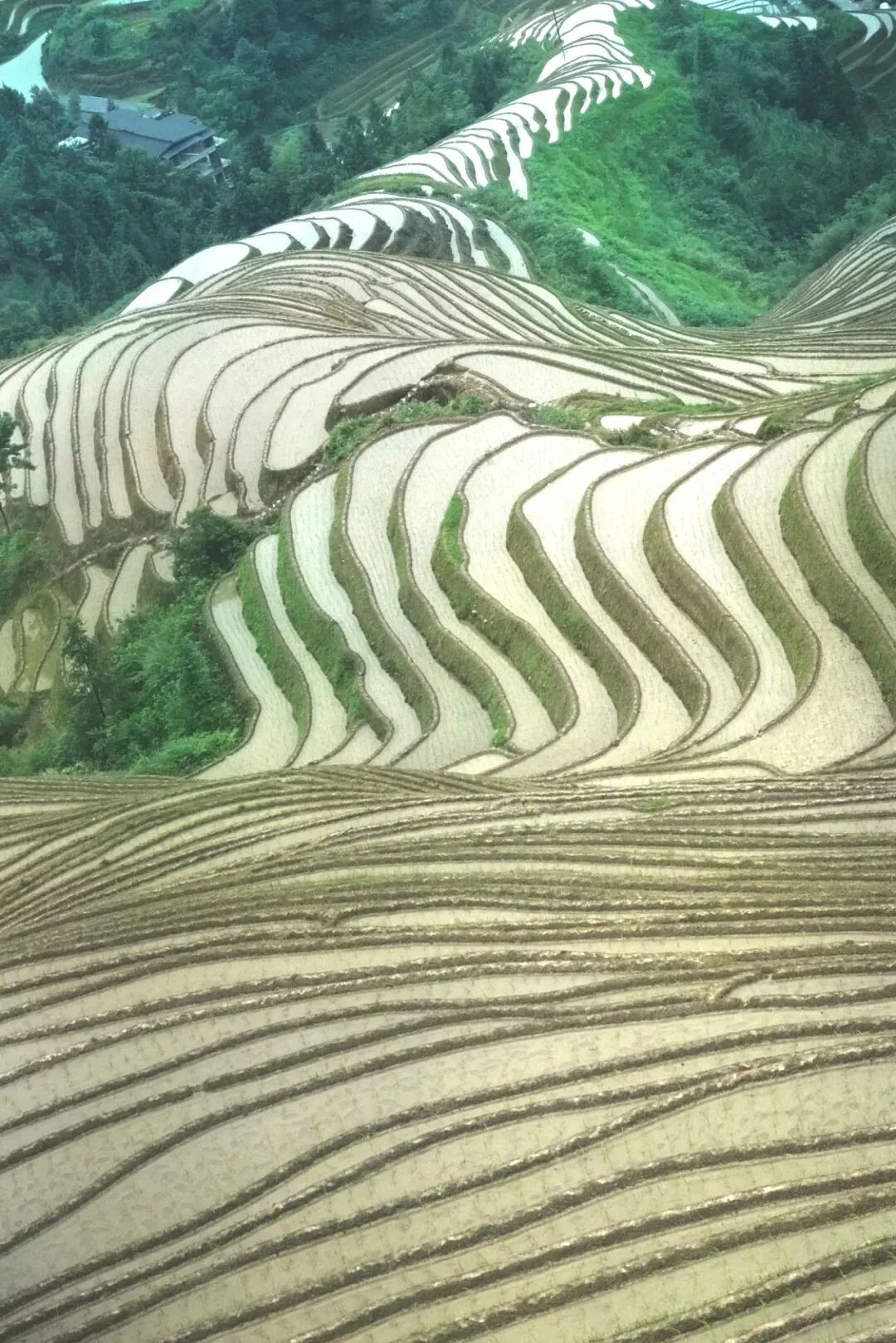 龙胜龙脊梯田,主要包括平安梯田和金坑梯田两个景区,分别代表着壮族和瑶族文化。两处梯田既有大刀阔斧的粗犷,又有丝丝入扣的精雕细琢;既有气势磅礴的壮美,又不乏清秀的艺术情调。山形各异,呈现韵味不同的诗域画境。