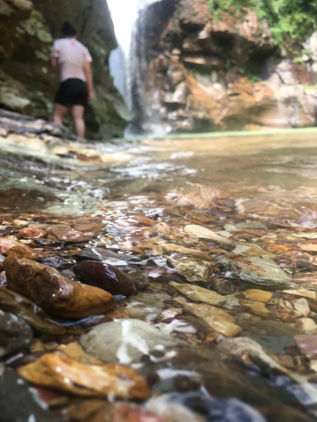 早餐及拔营后,行李装车。集合徒步至黄泥塘瀑布溯溪。沿林间土路小道下降抵达峡谷底部,于小瀑布潭(可体验小鱼啃食脚上死皮)开启竹林溯溪徒步。
